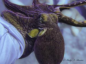 Octopus clings to the photographer's arm
